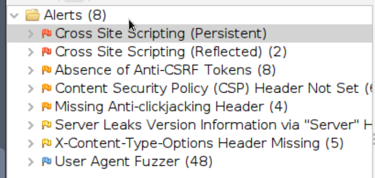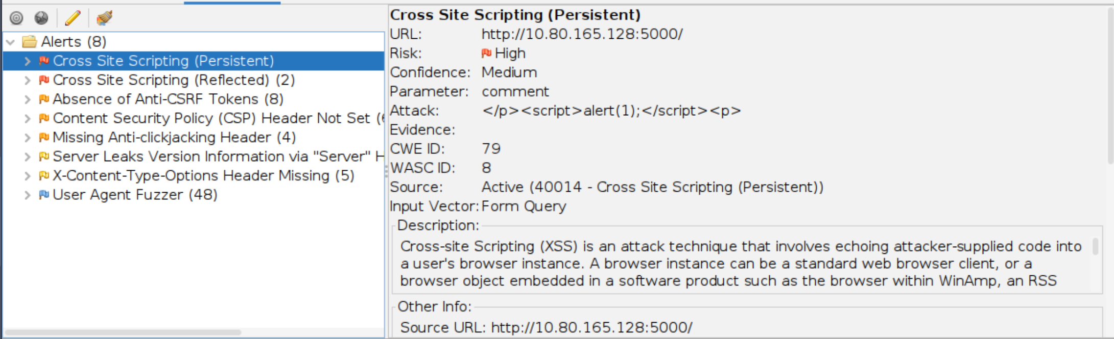 Run a ZAP (zaproxy) automated scan on the target. How many XSS alerts are in the scan?