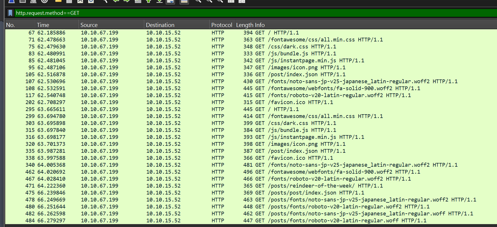 If we only wanted to see HTTP GET requests in our "pcap1.pcap" file, what filter would we use?