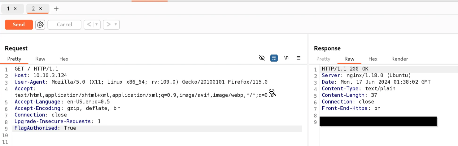 In the Proxy module, intercept a request tohttp://MachineIP/and send it to Repeater. - Send the Request